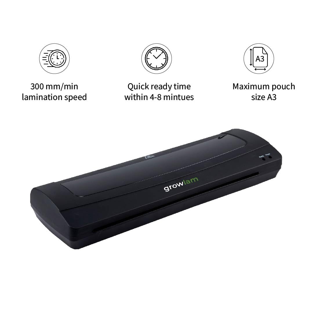 Growlam A3 GL-P380 All-in- One Professional Laminator| A3 Laminator| Laminating Plastic Machine| Hot & Cold | Ideal for Small Office/Home Use| Laminating Speed 300/mm | Low Power Consumption 365 W (Photos ID, I-Card, Documents, Certificate)